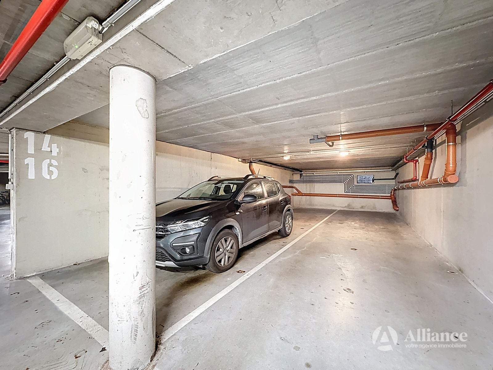 Parking sécurisé en sous-sol et une cave.