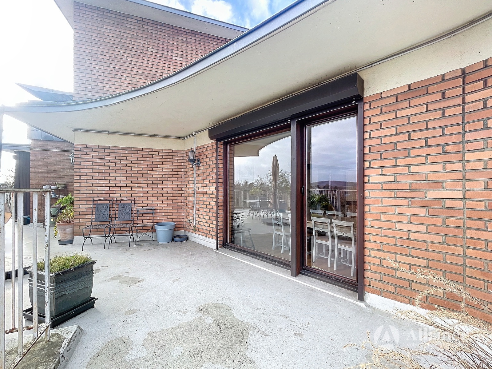 Hall d'entrée, cuisine, salle à manger, spacieux et lumineux salon, salle de bain, 2 chambres et une immense terrasse de 80m2 avec vue à 360°