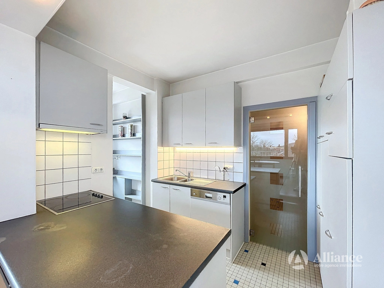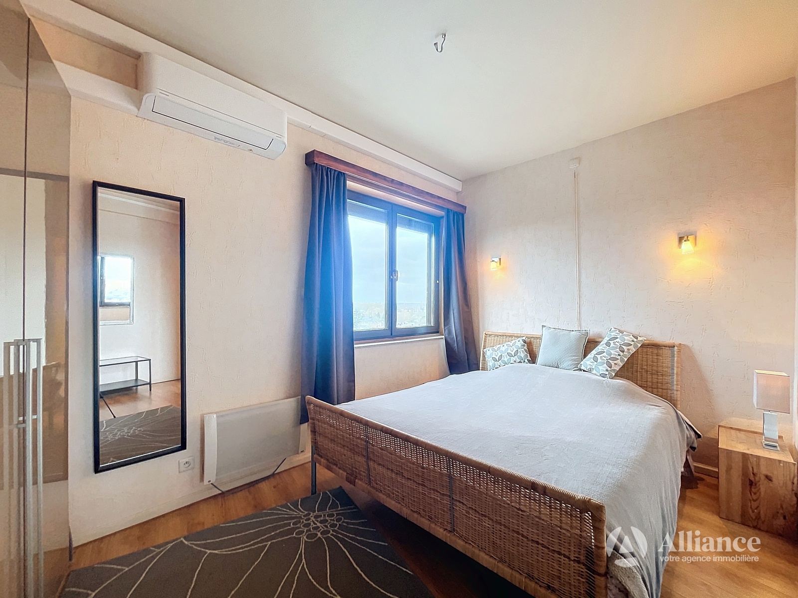 Situé au dernier étage d’un immeuble, ce penthouse de 100m2 possède une vue spectaculaire sur la ville.
