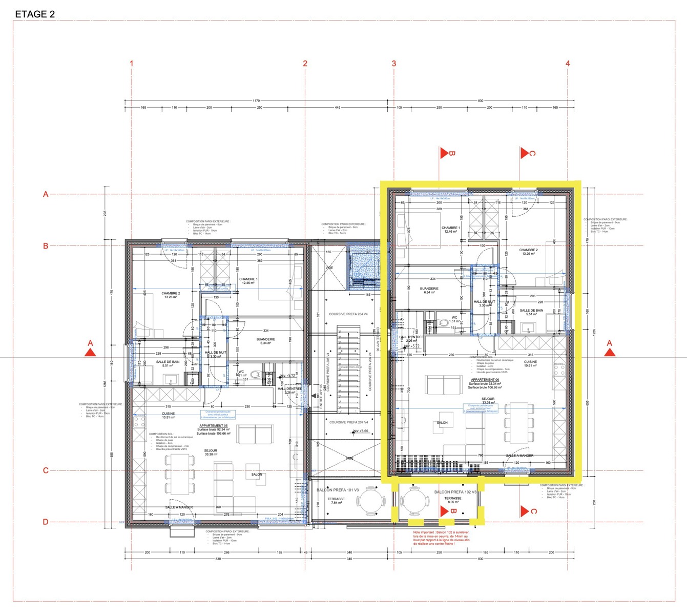 N°3 : Étage 1 gauche - 2 chambres - 107m2 bruts - Terrasse - VENDU