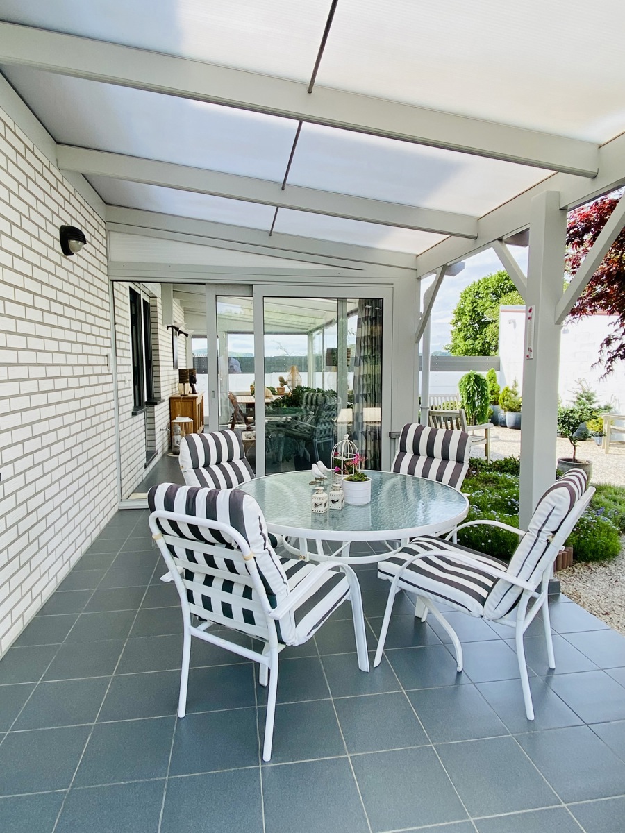 Rez-de-chaussée : Hall d'entrée (8m2), living (33m2), cuisine (17m2), salle de bains (7m2), 2 chambres (16-13m2), véranda (20m2), pergola (14m2)