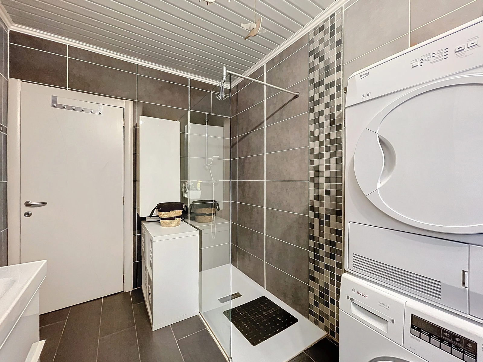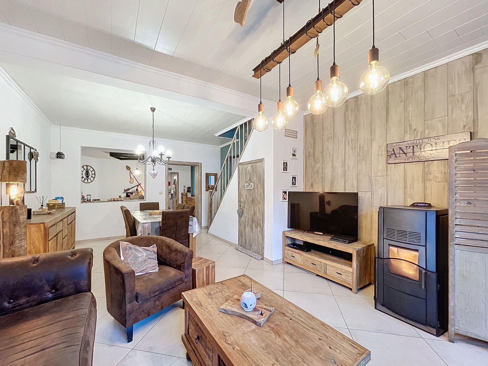 Techniques : Chauffage par le poêle aux pelets et par le poêle à bois (anciennement chauffé par un chauffage central gaz qui a été condamné), boiler de 150 litres, châssis PVC double vitrage, volets électriques à l'avant et manuels à l'arrière, citerne d'eau de pluie de 1.000 litres, 21 panneaux solaires (chacun équipé d'un onduleur individuel).