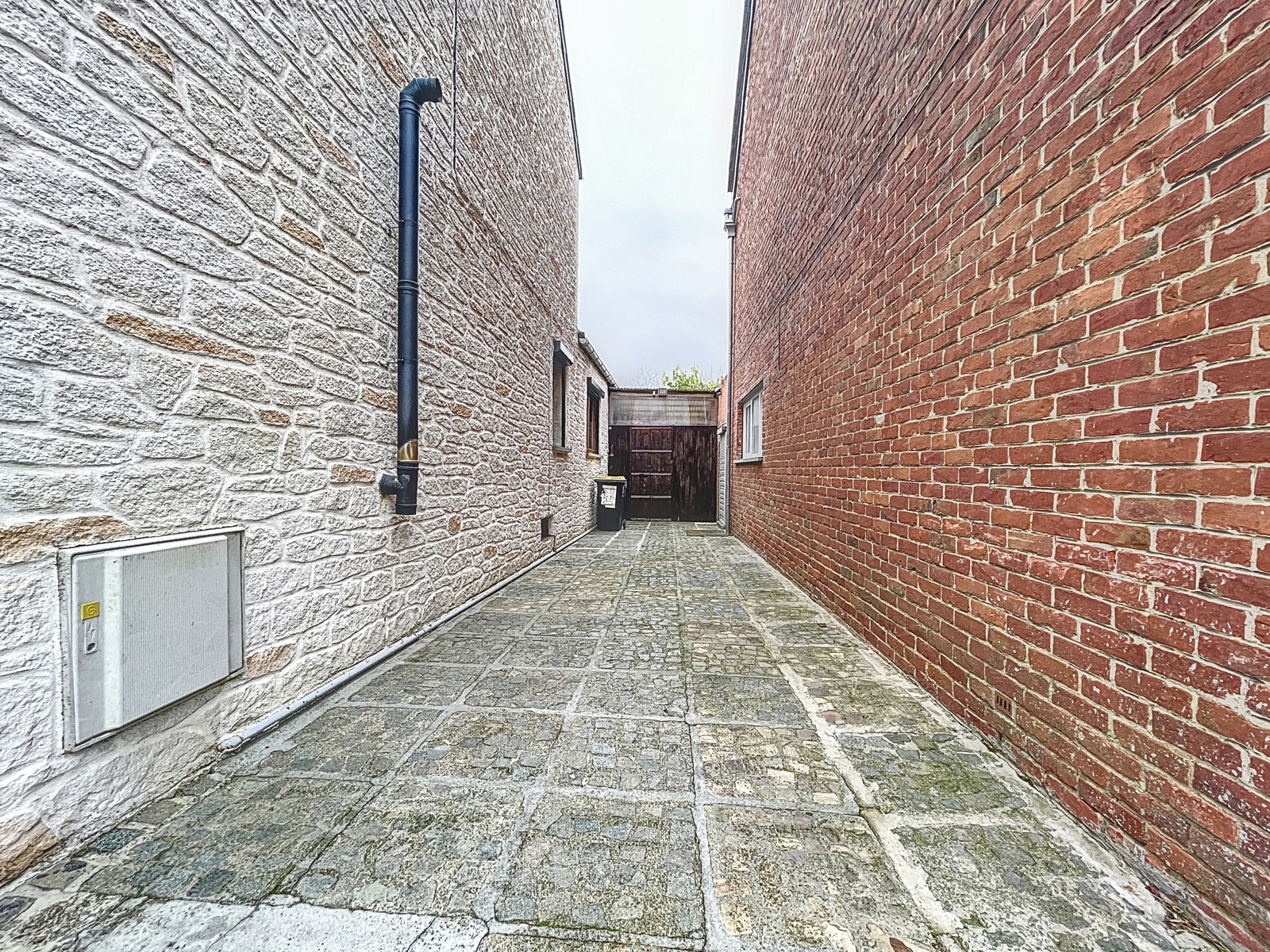 Extérieur : 2 emplacements de parking dans le passage latéral, jardin de 10 ares, terrasse couverte et non couverte, atelier (22m2), accès en voiture dans le fond du jardin.