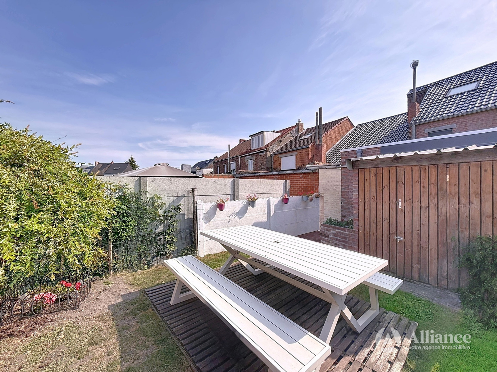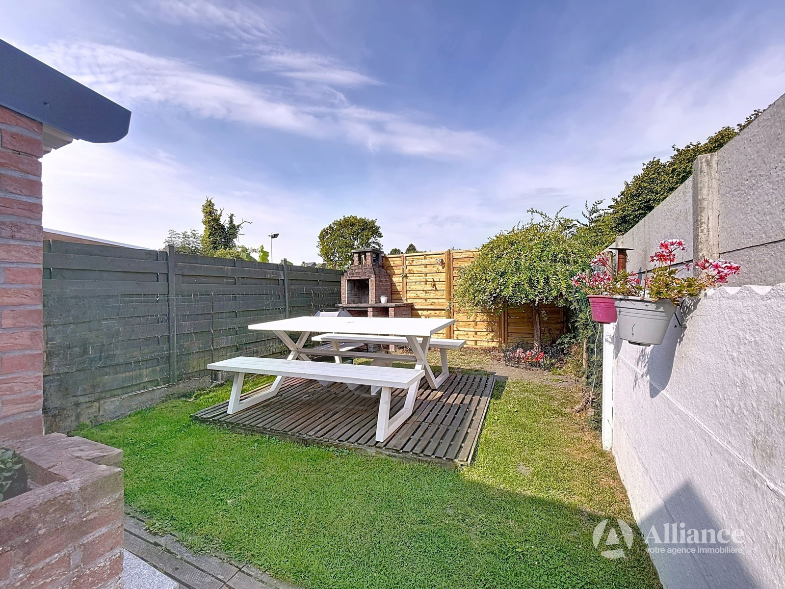 Extérieur : Parking aisé devant la maison, terrasse (6,5 m2), jardin (20 m2), espace rangement fermé, barbecue.